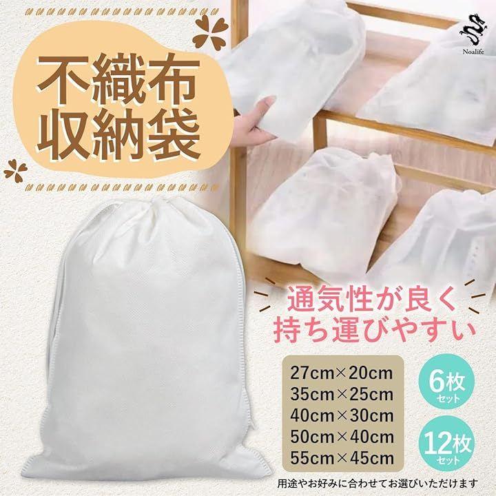 豊富なサイズ・個数から選べる 不織布収納袋 巾着袋 白 無地 紐付き 巾着収納袋:柔らかで上質の不織布素材を採用した巾着タイプの収納袋です。