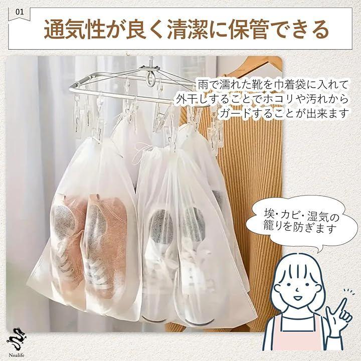雨で濡れた靴などを巾着袋に入れて外干しすることでホコリや汚れからガードすることが出来ます。
