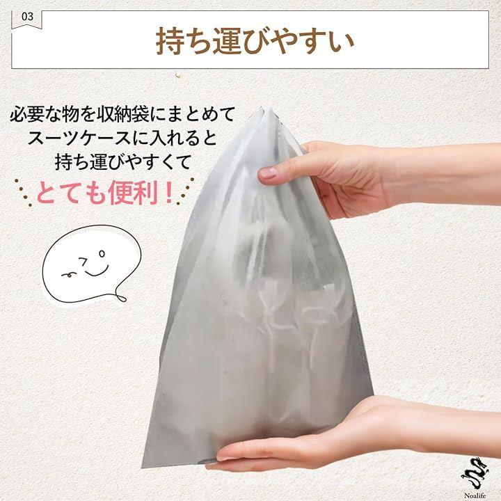 持ち運びやすい:巾着タイプで、絞った紐を持ち手として使用できるので、持ち運びやすい設計です。