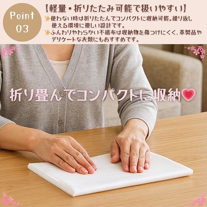 ふんわりやわらかい不織布は収納物を傷つけにくく、革製品やデリケートな衣類にもおすすめです。