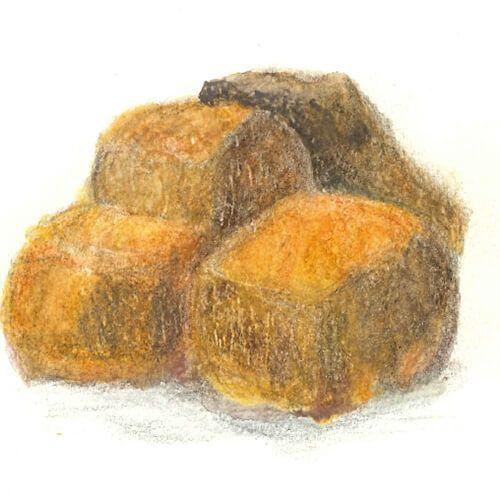 沖縄県産の黒糖は、もともと風味の“くせ”が強く、その黒糖と、合わせる北海道産の小麦粉も“膨らみにくい”という欠点があり開発当初はこの二つの材料を上手く組み合わせるのに苦労しました。。。