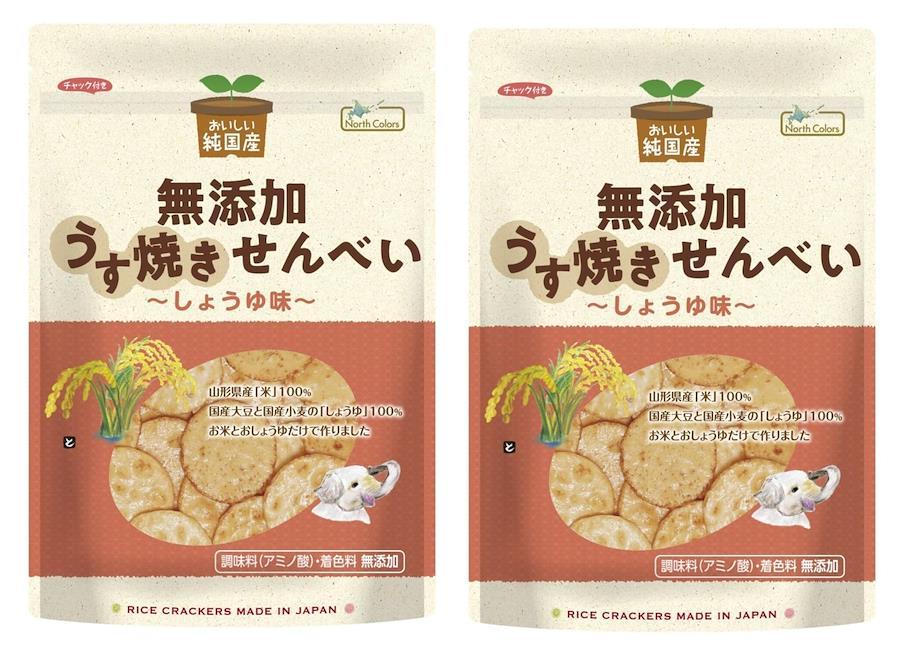 ノースカラーズ 純国産うす焼きせんべいしょうゆ味 100g×2袋 無添加 山形県 おやつ 間食 こめ油 添加物不使用