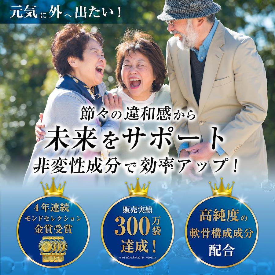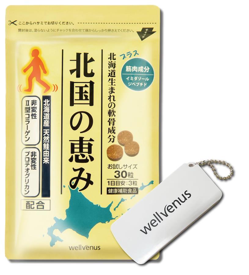 ■サイズ:??14.7x10.7x1.8cm;20g ?【愛され続けて累計販売数300万袋突破】2013年1月に販売を開始した『北国の恵み』は、愛され続けて「累計販売数が300万袋(※1)を突破」毎日たくさんの方にご愛飲いただいており、「お客様満足度はなんと91%(※2)」多くのお客様から3か月目で健やかな曲げ伸ばしを実感したとお喜びの声をいただいております。※1,93粒入り換算2013/1?2023/5。※2,「北国の恵み」の定期購入で3ヶ月目のお客様から無作為に抽出したお客様を対象にアンケート調査を実施。(2013年5月?6月)n=100 ウェルヴィーナスの「北国の恵み」を「満足」「やや満足」と回答した91名、「やや不満」「不満」と回答した方9名。) ?【プロテオグリカン】軟骨は水分を除くと「プロテオグリカン」と「2型コラーゲン」この2つの成分が約90%を占めています。ふしぶしのサプリといえば「グルコサミン」「コンドロイチン」などはよく耳にすると思いますが、実はそれらは「プロテオグリカン」の一部を構成している成分に過ぎません。それらの成分とは違い、軟骨そのものを構成する主成分である「プロテオグリカン」は、特徴的な形と水を集める特製から弾力と保水力に優れた軟骨成分です。 ?【2型コラーゲン】軟骨の主成分のうち、水分を除き一番多い成分は「2型コラーゲン」。軟骨を支える土台成分となっており、栄養素を留める働きも。『北国の恵み』には、様々な研究結果に基づいて、プロテオグリカンと2型コラーゲンを最適なバランスで配合しております。 ?【軟骨成分以外にもサポート成分をふんだんに配合】『北国の恵み』には、「プロテオグリカン」と「2型コラーゲン」に加え、軟骨成分のうちの1つである「ヒアルロン酸」、さらに筋肉成分として注目されている「イミダゾールジペプチド」含有のチキンエキスをしっかり配合。イミダゾールジペプチドとは動物の筋肉成分で、渡り鳥の羽の付け根などに多く含まれており、毎日の健康をサポートします。 ?【安心の品質管理、安心の世界実績】毎日飲むものだからこそ、安全性にもこだわって徹底的な品質管理を行っております。『北国の恵み』は、厚生労働省のガイドラインに基づいた国内GMP認定工場で品質を管理しております。「北国の恵み」はその品質が認められ、モンドセレクション最高金賞を受賞。※本製品は、GMP製品マークはつけられていませんが、GMP認定工場(認定番号11105)で製造されました。認定期間 2020年7月29日~2023年7月28日。さらに、確かな品質は世界的にも認められ、”モンドセレクション最高金賞”を2020年・2021年と連続で受賞しました。 " ■重要なお知らせ安全上のお知らせ植物アレルギーのある方は、原材料名をご確認のうえ、ご使用をお決め下さい。原材料・成分還元麦芽糖水飴、デキストリン、ボスウェリアセラタ樹脂抽出物、キャッツクロー抽出物、鮭鼻軟骨抽出物(非変性プロテオグリカン、非変性Ⅱ型コラーゲン含有)、チキンエキス(イミダゾールジペプチド15%含有)、ビール酵母(セレン含有)、セイヨウシロヤナギ抽出物、セルロース、ステアリン酸Ca、微粒酸化ケイ素、抽出ビタミンE、ヒアルロン酸、ビタミンB1、ビタミンB6、ビタミンD、ビタミンB12※植物由来原料を使用しているため、錠剤の表面に茶色斑点が出ることがありますが、品質には問題ありません。使用方法1日当たり3粒を目安に水またはぬるま湯などでお召し上がりください。