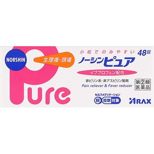 ■商品概要メーカー:アラクス商品名:ノーシンピュア 48錠医薬品分類:指定第2類医薬品区分:OTC医薬品小児用区分:大人用(大人(15歳以上)の用量・用法しかない)薬剤形状:錠剤・丸剤・カプセル内容量:48錠商品概要:生理痛・頭痛 小粒でのみやすい【使用期限】出荷時点で使用期限終了まで1年以上JANコード:4987009111837商品コード:101402071