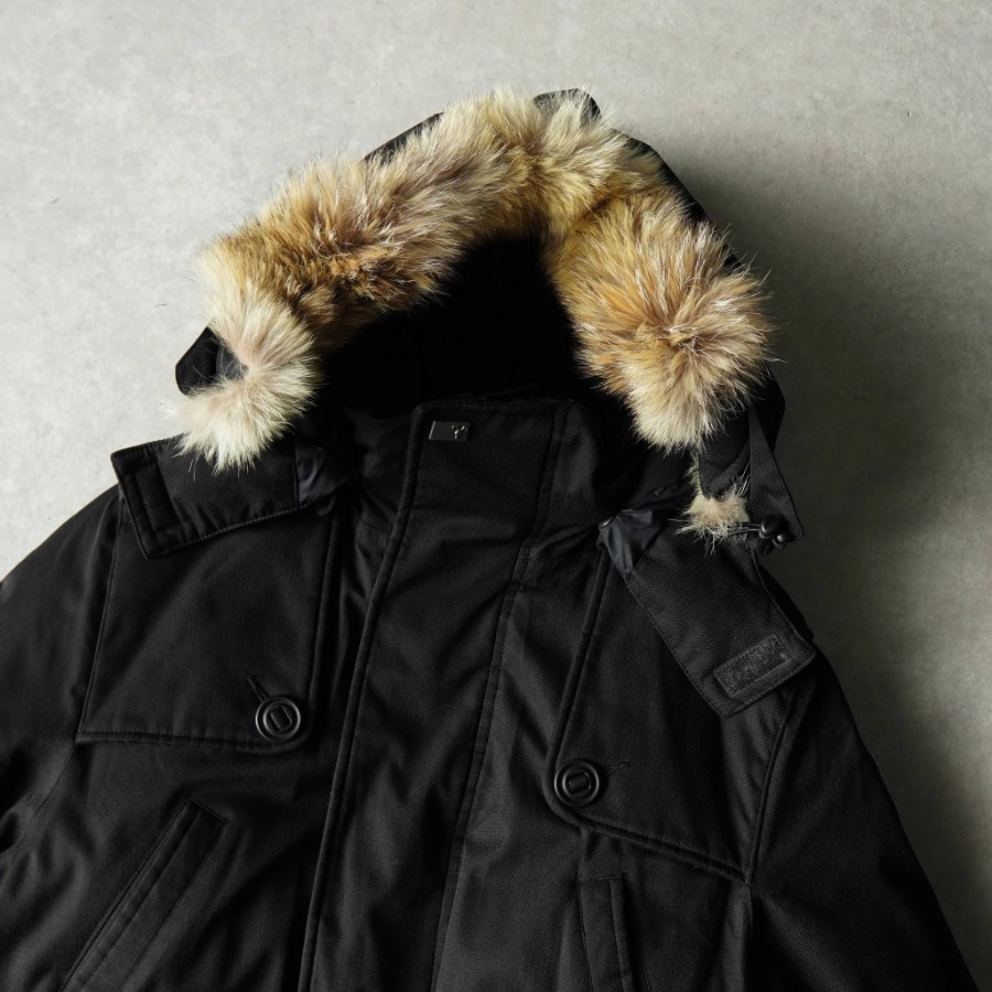 素材:表地:ポリエステル100%裏地:ナイロン100%充填材:カモ羽毛100%ファー:コヨーテ毛皮100%