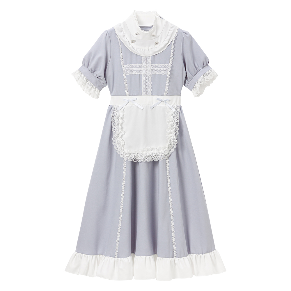 十字架レースがかわいいナースメイドなワンピース♪【デザイン】前掛けエプロンを付けているようなワンピースが登場♪後ろのリボンは取り外し可能で、リボンの足には十字架の刺繍がポイント。後ろウエストゴム入りで、左肩と左脇のファスナーを開けて着脱可能です。種類の違うレースがふんだんにあしらわれた上品な一枚です。。写真映え間違いなしなワンピースです。【素材】しっかりとした素材です。本体に裏地付き。【コーディネート】1着で主役級のかわいいワンピース♪ヘッドドレスやレースソックスなどを併せてロマンチックに着用するのがおすすめです。《透け感》なし 《生地の厚さ》普通 《裏地》あり 《伸縮性》なし《生産国》中国