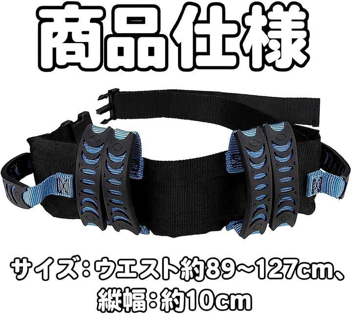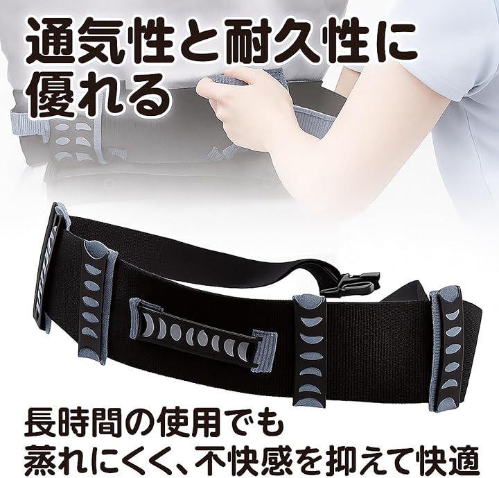「扱いやすい設計」腰回りにしっかり固定できる幅広ベルト(縦幅約10cm)で安定感を確保。