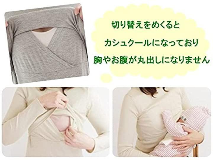 胸元をめくるとカシュクールになっており、さっと授乳出来る便利な長袖カットソーです。