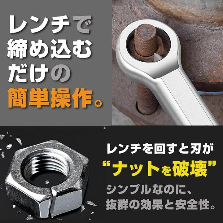角がなめたナットや腐食・固着したナットを物理的に分割し、安全に取り外します。