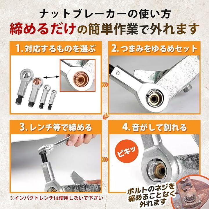「頑固なナットを迅速に解決。強力なナットブレーカー」 錆びて固着したナットや、角が舐めてしまって動かないネジを簡単に外せるナットブレーカーです。