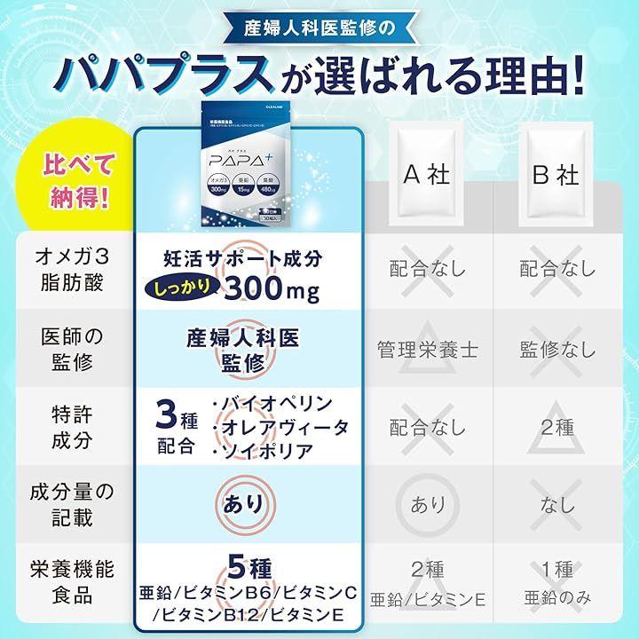 「産婦人科医監修」パパプラスは、専門の医師監修のもと開発された男性向けサプリです。