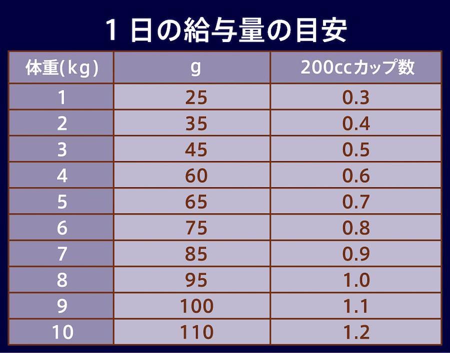 愛猫の体型や年齢などの1日に必要なカロリーに合わせ、適切な量を与えて下さい。