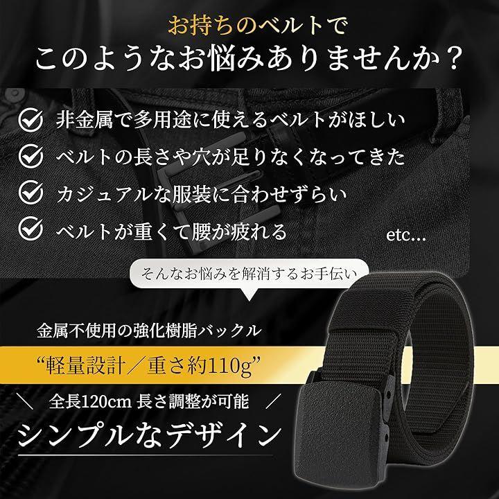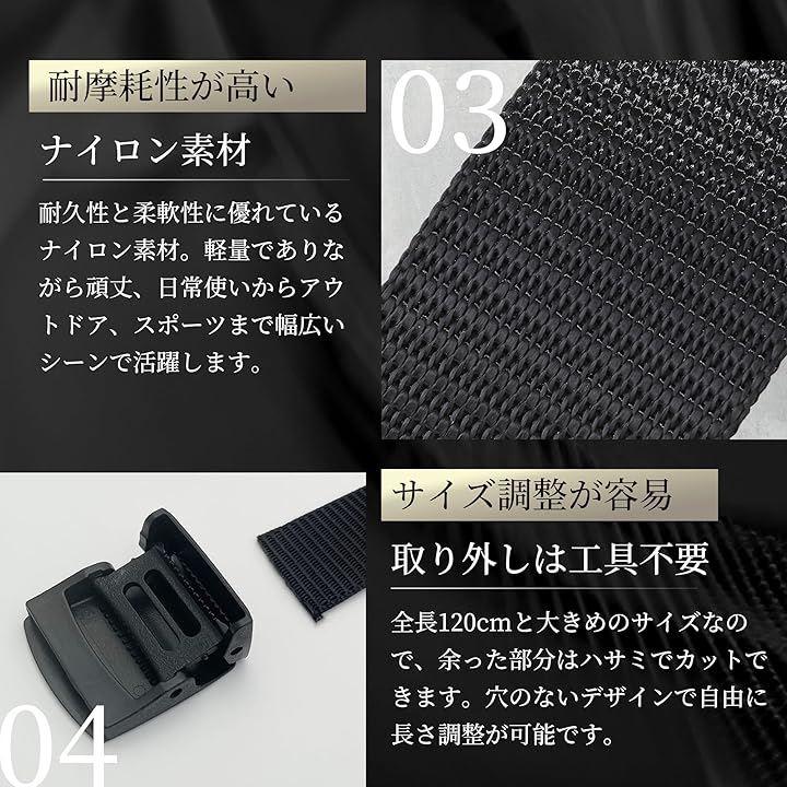 金属アレルギーに最適なプラスチック製バックルを採用したナイロンベルトです。