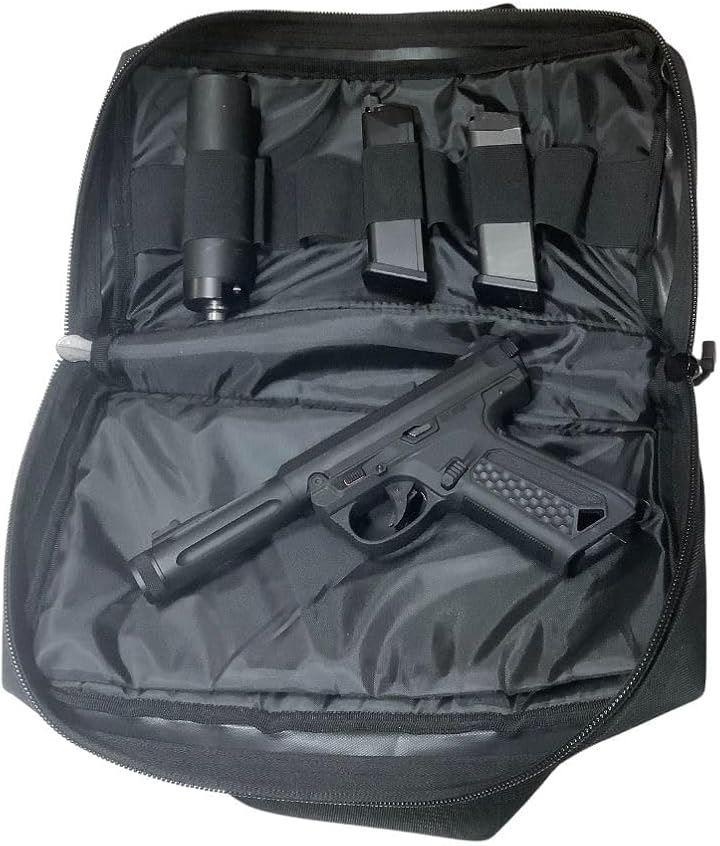 ハンドガンタイプのモデルガン、エアソフトガンの収納用に製作されてますが、PCバッグとして10インチ程度までのパソコン、タブレットが収納でき、その他、各種道具入れとしても便利なポケットになっています。