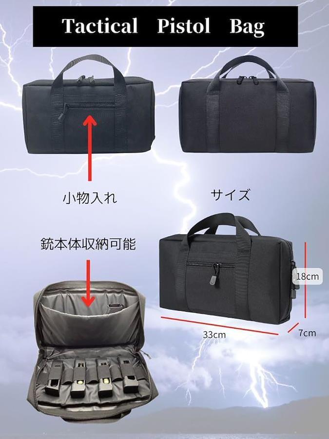 ハンドガンタイプのモデルガン、エアソフトガンの収納用に製作されてますが、PCバッグとして10インチ程度までのパソコン、タブレットが収納でき、その他、各種道具入れとしても便利なポケットになっています。