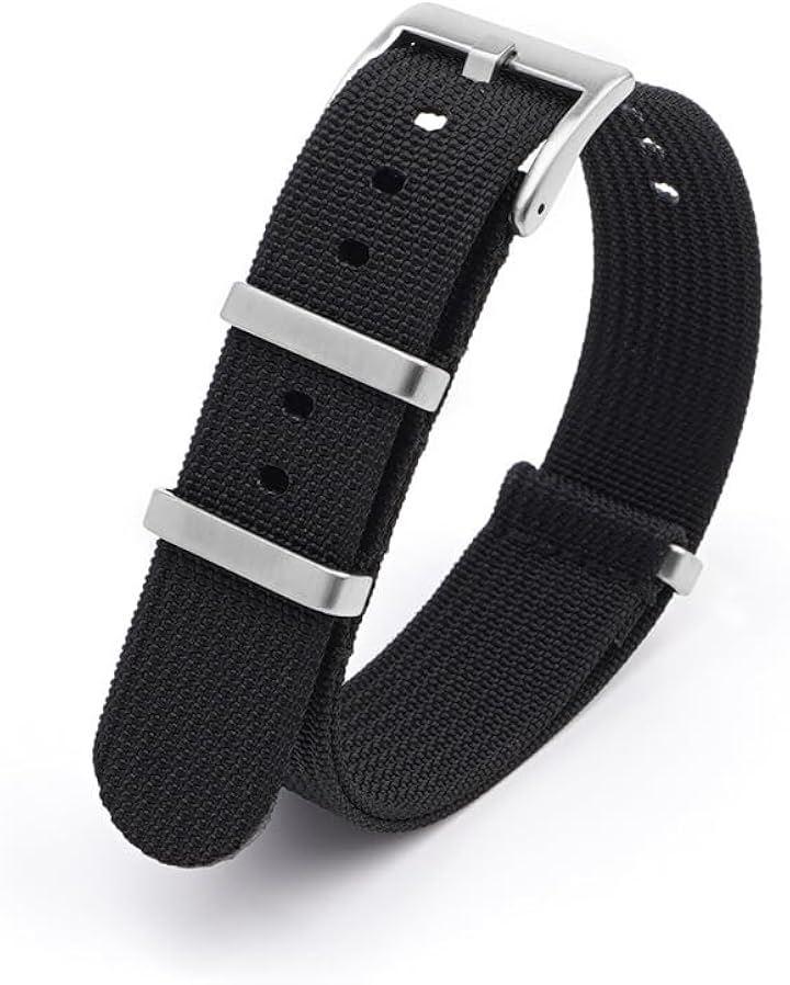 「耐久性」このナイロン時計バンドは、ミリタリー仕様の高品質素材を使用しており、日常の摩耗や引っ張りに強く、長期間にわたって使用可能です。