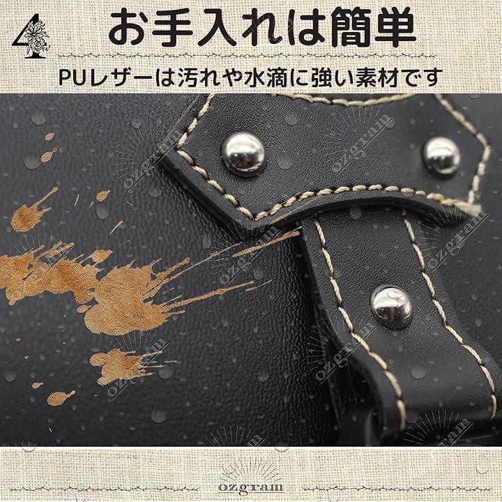 「お手入れは簡単」 高級感と防水性を兼ね備えたPUレザーを採用。