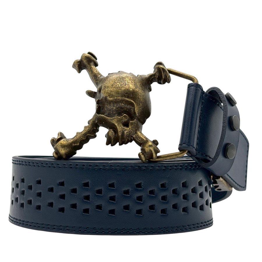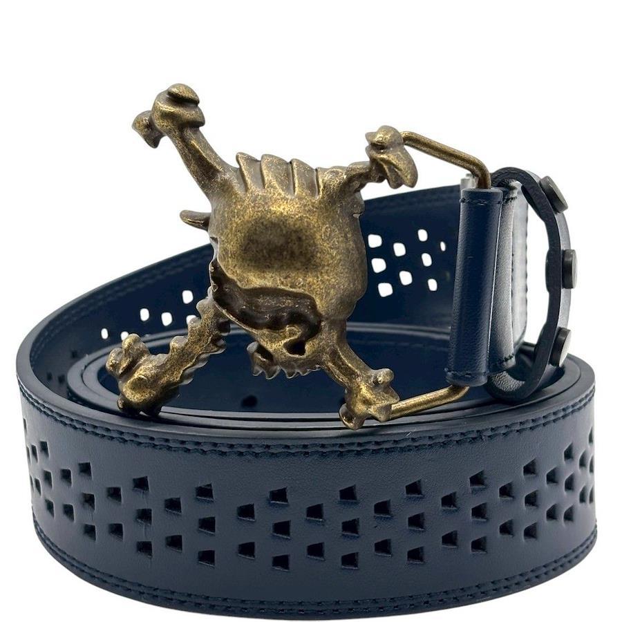 【商品説明】・オークリーらしい攻めたデザインが光るスカルレザーベルト。パンチング加工のネイビーレザーにブラス調のバックルが映え、ゴルフスタイルを一段格上げします。プレー時の安定感はもちろん、普段使いのコーデにも取り入れやすい存在感ある一本。スカルシリーズをお探しの方にもおすすめです。