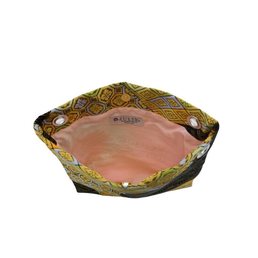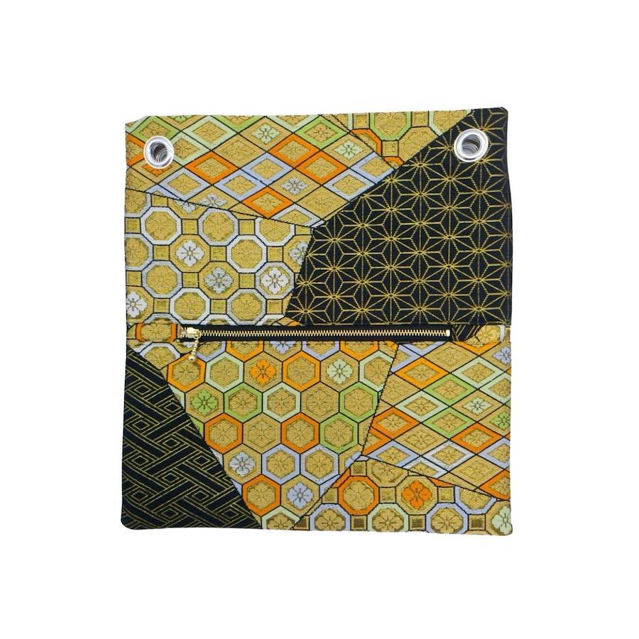 金をベースとした日本らしい和風柄のショルダーバッグ。 裏地は正絹(シルク)100%の襦袢を使用してます。 肩掛け用の帯締めが1本無料でつきます。 素材/材質 :シルク100%(正絹)上質なシルクを使用してます。サイズ/寸法: 縦30cm 横28cm注 意 :モニター発色の具合により色合いが異なる場合がございます。■着物帯から作ったオリジナルバッグ。■オシャレなショルダーバッグ、帯締めを調整すれば手持ちバックにもなります。■見た目のイメージにインパクトと帯ならではの美しい一品になります。