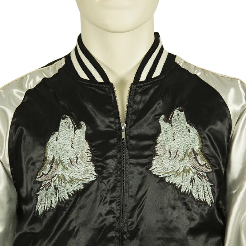 満月に狼 柄 刺繍 和柄スカジャン