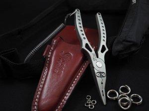 スペック○全長:16cm○重量:95g○対応スプリットリング:#2(4.7mm)~#11(13mm)○タングステンラインカッター○アルミスリーブプレッサー○カラー:チタンシルバー※本革ケース、スパイラルコード、カラビナ付属