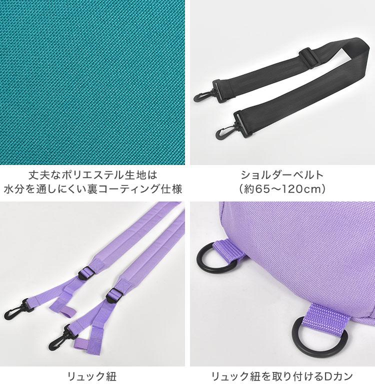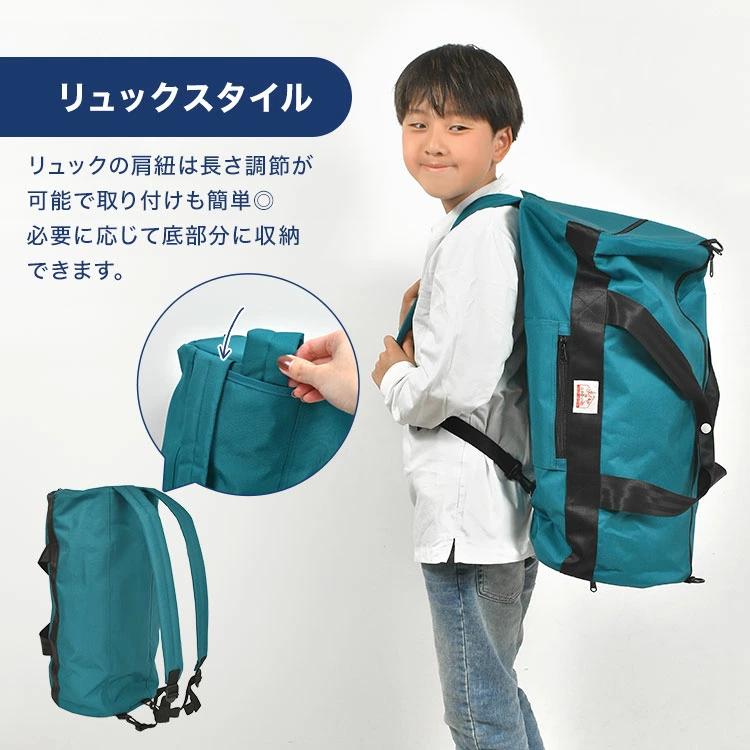 【3WAYボストンバッグ】手提げ・ショルダー・リュックの3WAYで使えるボストンバッグ。ショルダーベルトは取り外し可能、リュックの肩紐も収納ができます。42リットルの大容量で、前面・側面には小物を仕分けて収納できるファスナーポケット付き。水分を通しにくい裏コーティングのポリエステル生地で修学旅行や林間学校、キャンプにぴったりです◎