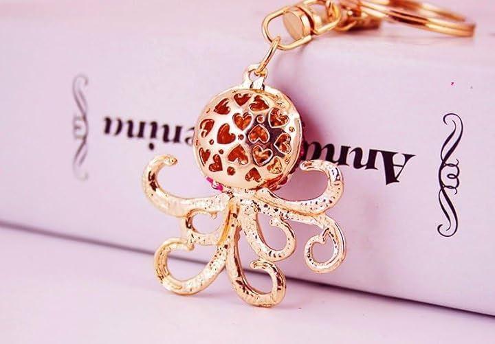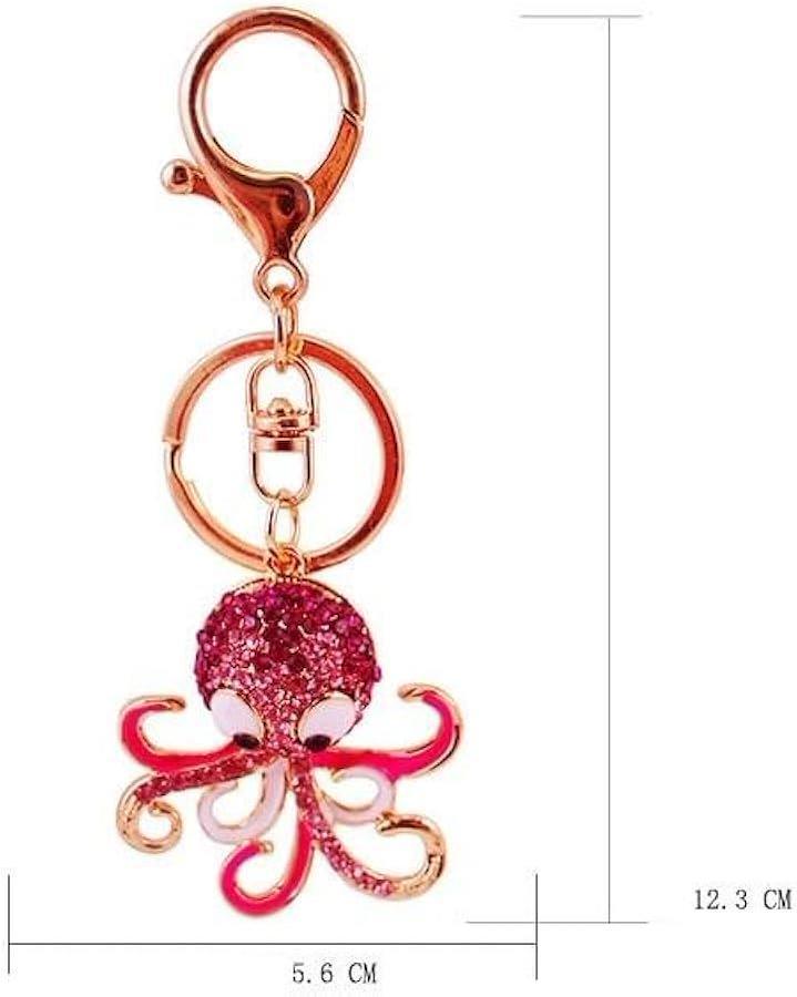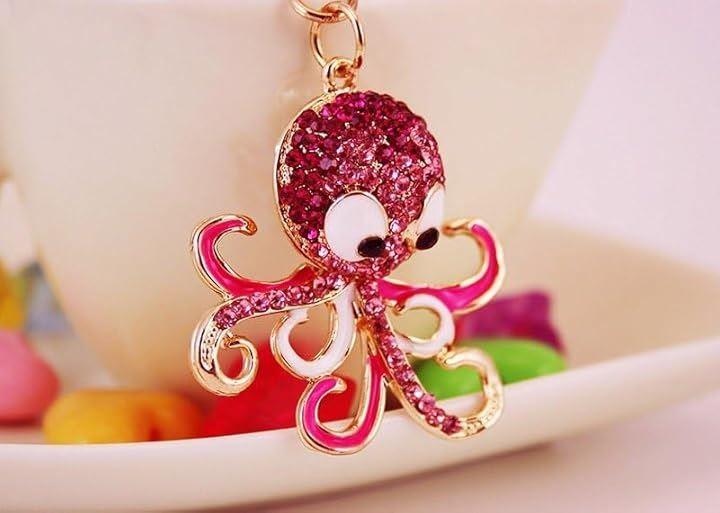 この華やかなタコのキーホルダーは、キラキラと輝く赤いラインストーンでデザインされています。