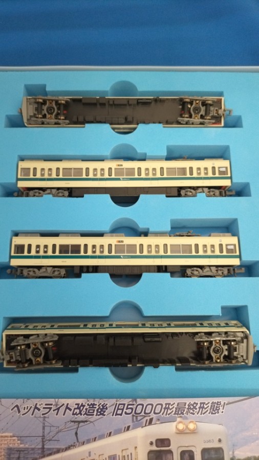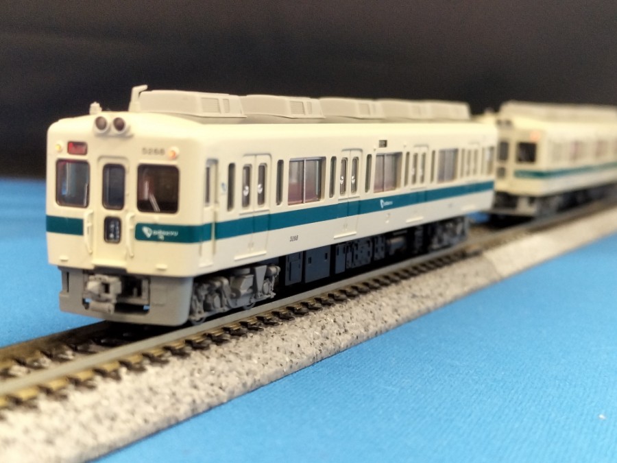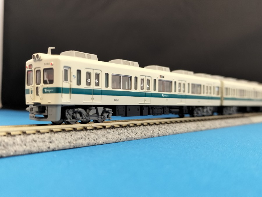 ■小田急5000形の後期生産形は側面窓が9000形に準じた1段降下窓にマイナーチェンジされたため、5200形とも呼ばれてます。千代田線乗り入れに備えて専用の9000形の生産が優先されて当時増備が進んでいた本線専任の5000形の生産を中止、昭和52年に9000形の生産が落ち着くと5000形の生産が再開するにあたり、9000形で採用された1段降下窓を取り入れ、6両編成となり4両編成と連結しての10両運転を視野に入れた車両が5200形となります。9000形は当時新鋭技術であった界磁チョッパ制御を採用したにも関わらず9000形より一世代前の抵抗制御の5000形生産再開したのは在来の5000形や2600形との連結を優先したためと9000形が地下鉄特化形のスペックで地上用で増備するにはオーバースペックだったためと言われています。昭和57年まで増備され、以降の増備は地上用に再設計された界磁チョッパ制御車8000形にバトンを渡すことになります