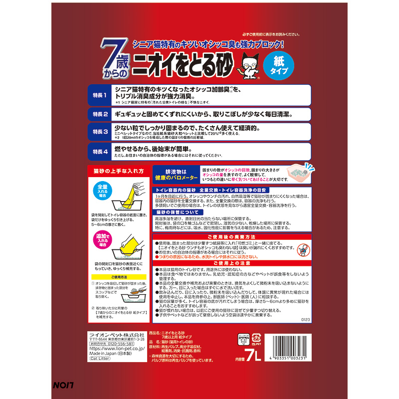 ・シニア猫特有のキツくなったおしっこ加齢臭をトリプル消臭成分が協力消臭。・ギュギュっと固めて崩れにくいから。取りこぼしが少なく毎日清潔・少ない粒でしっかり固まるので、たくさん使えて経済的・燃やせるから後始末が簡単