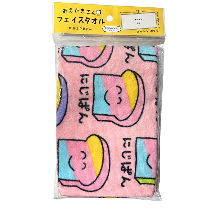 Oekakisan Face Towel (with header) 34 x 75 cm, 4 designs, Snowman, Pink (292083)