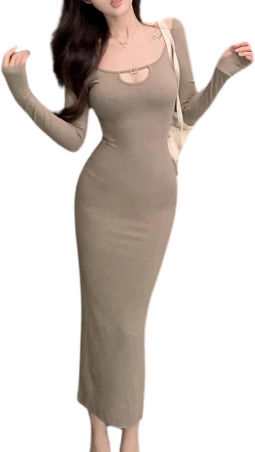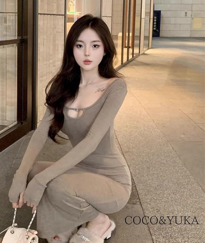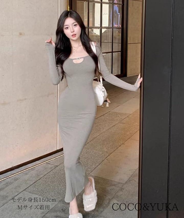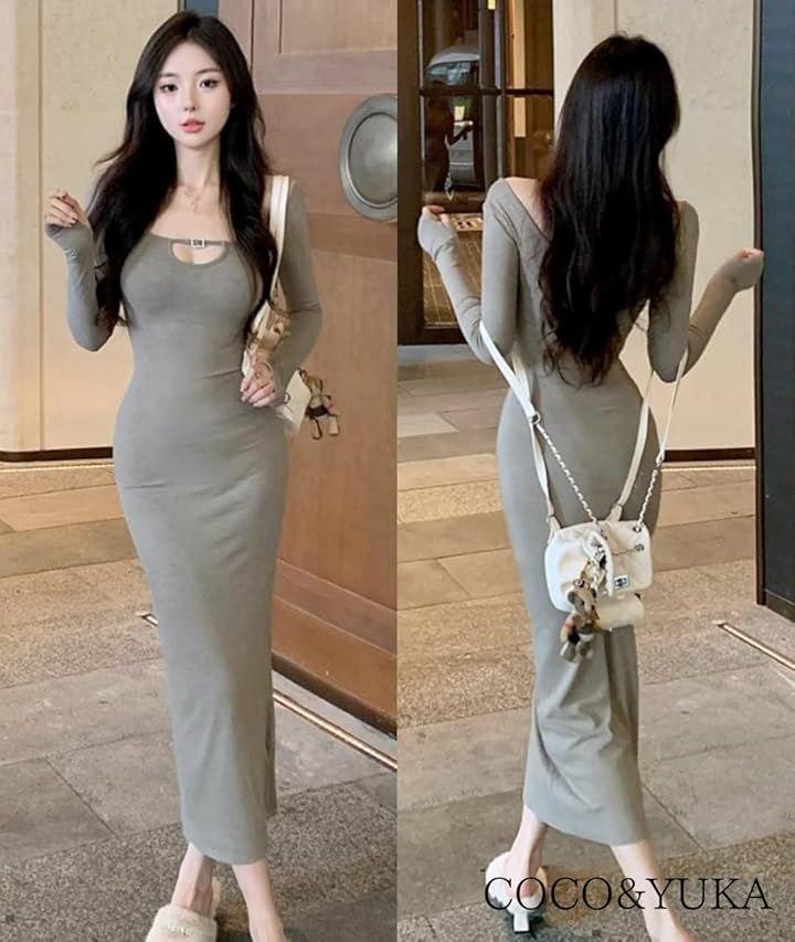 エレガントなシルエットで魅せる、大人の色気と可愛さを兼ね備えたボディコンシャス ロングワンピース。