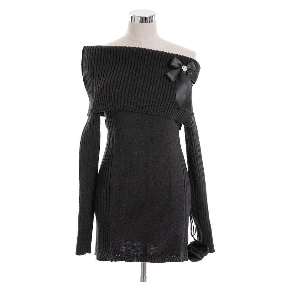デコルテを美しく見せるオフショルダーデザインで、女性らしい雰囲気を引き立てます。