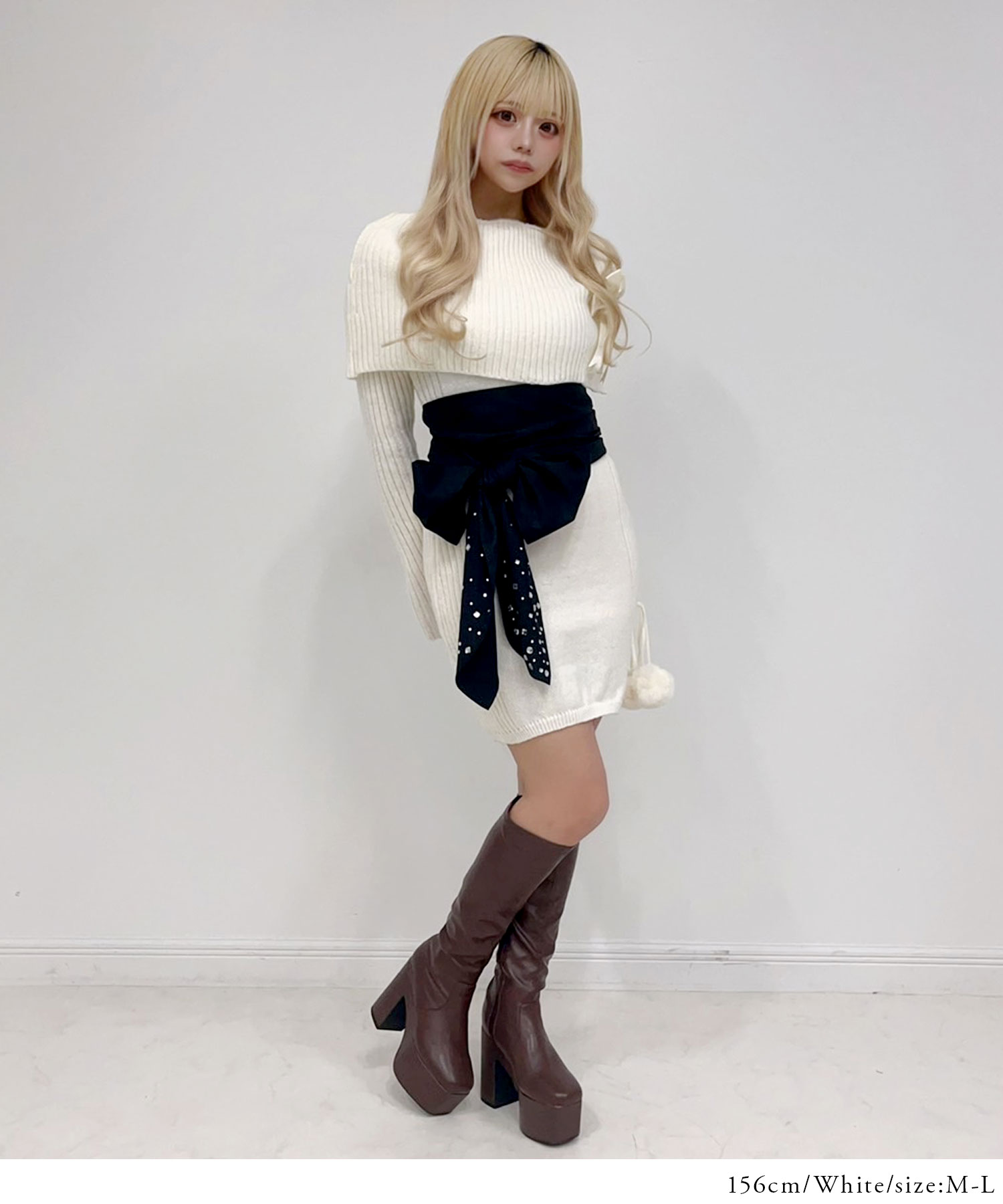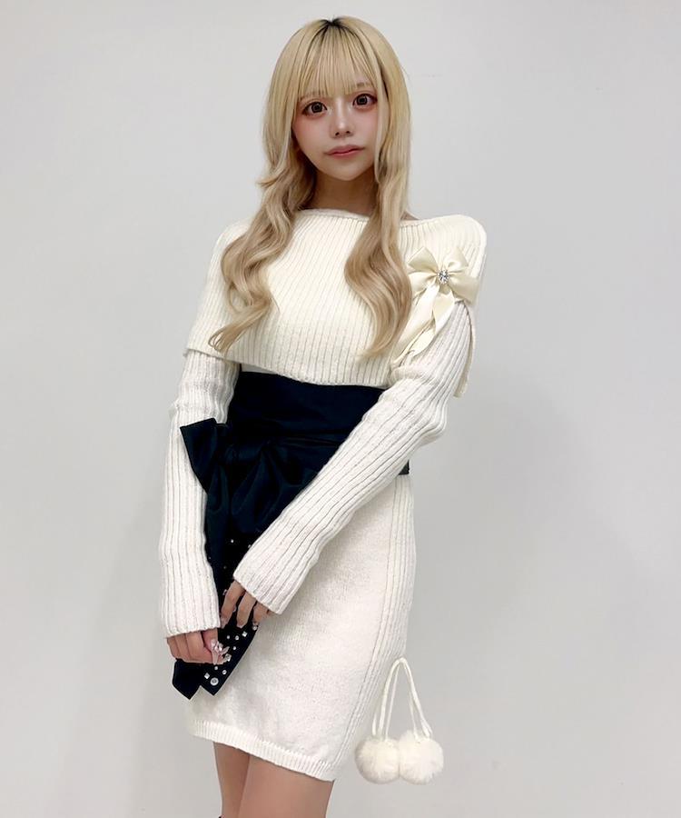 リボンパーツで甘さと華やかさをプラス。シルエットを強調しつつ、アクセントになります。