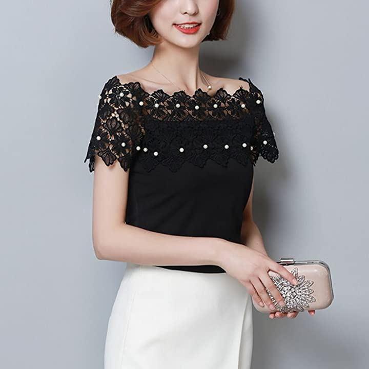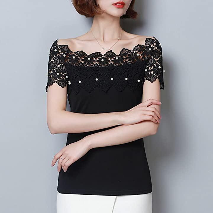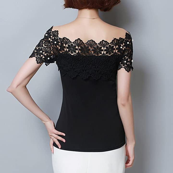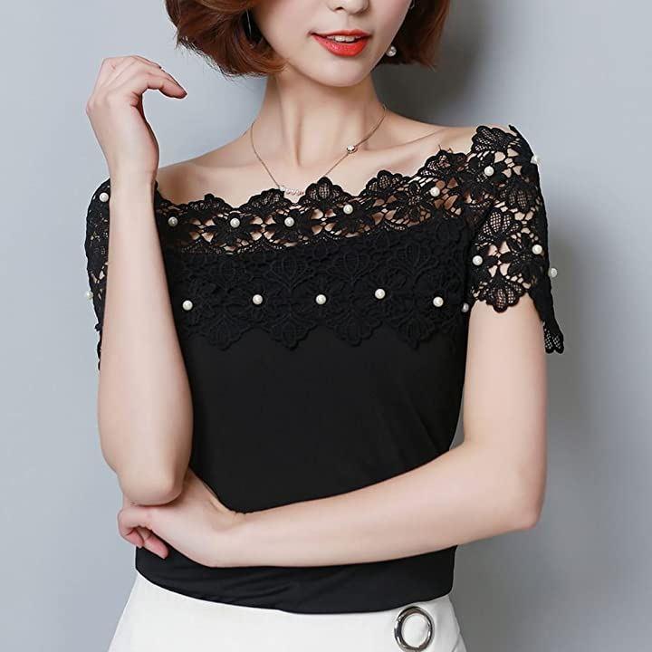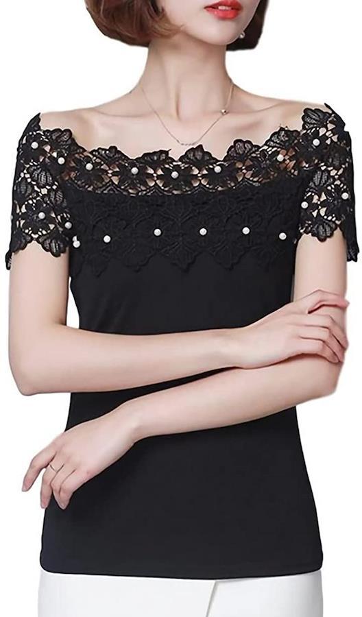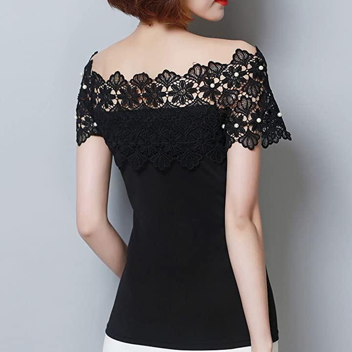 ・肩出しレースデザインがセクシーで上品なレディース半袖カットソーです。