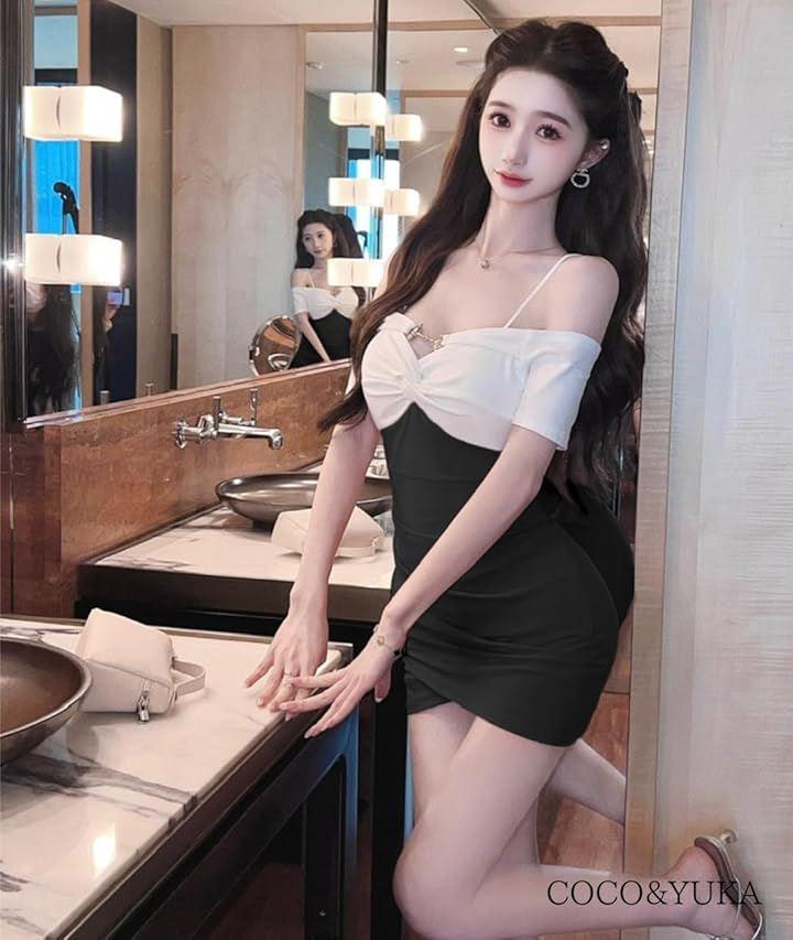 セクシーなオフショルで、谷間がさりげなく盛れてかわいいデザインのワンピースです。