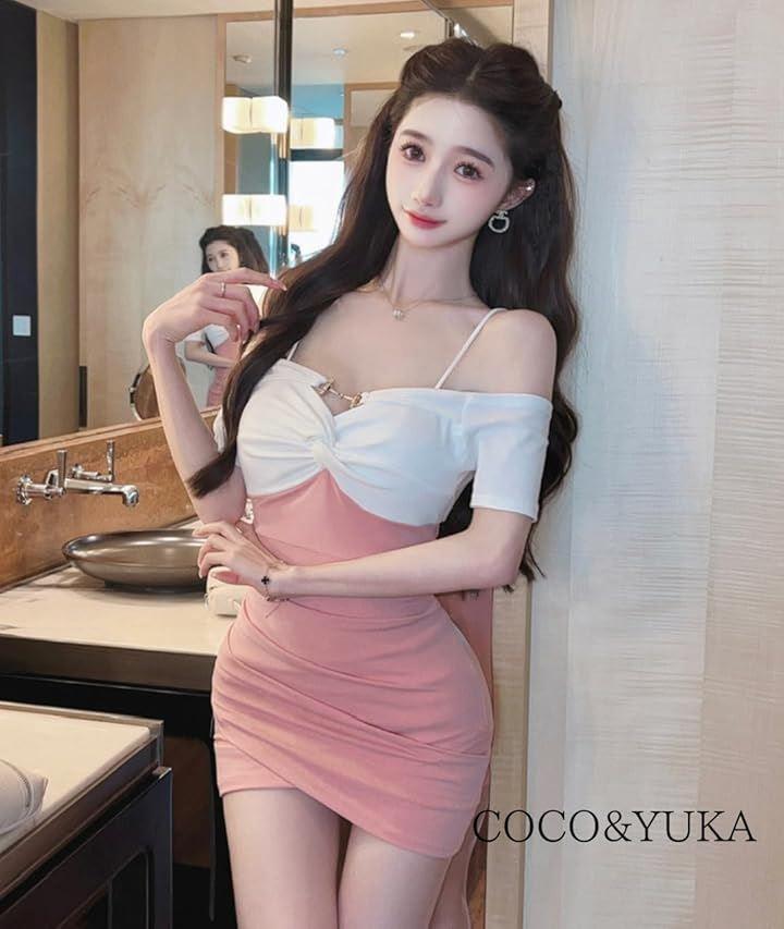 セクシーなオフショルで、谷間がさりげなく盛れてかわいいデザインのワンピースです。