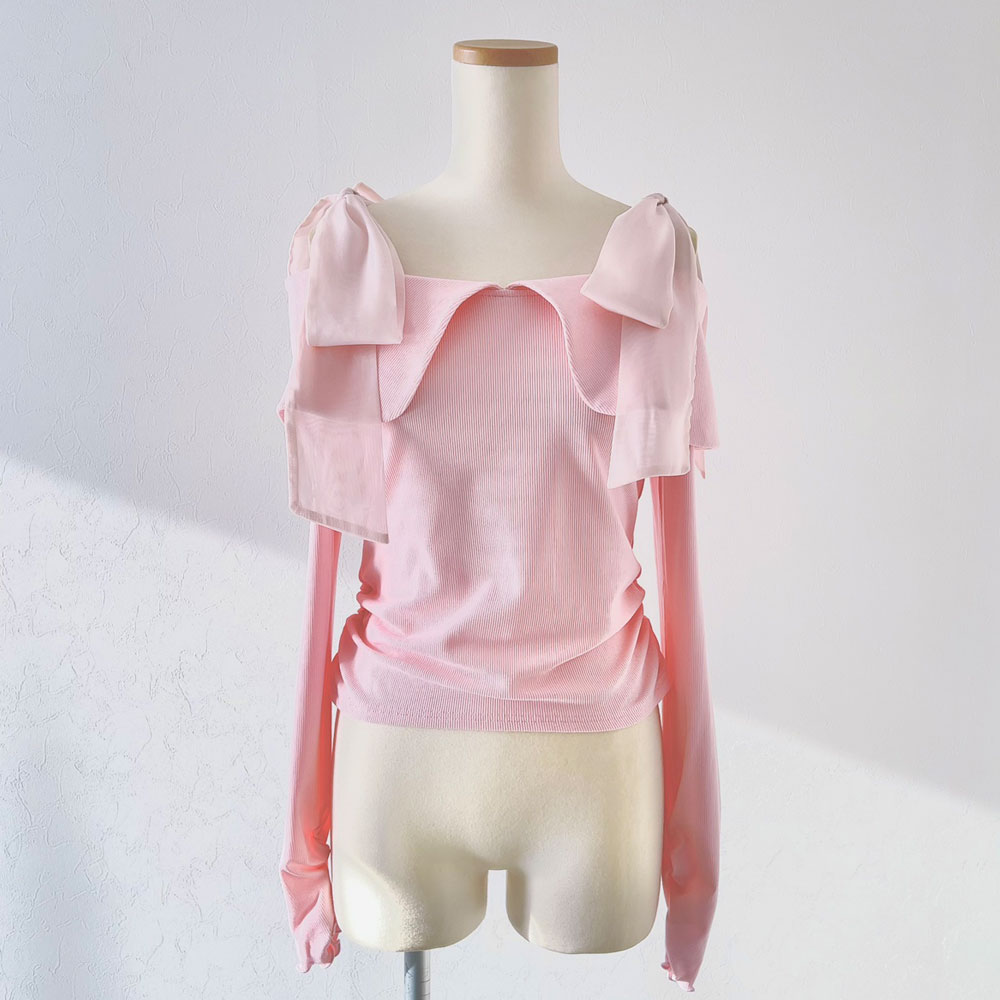 エアリー感のある肩リボンがガーリーで可愛らしく、女性らしくてふんわりとした印象を与えてくれます。