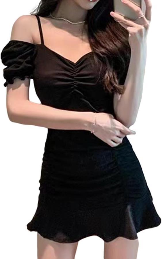 セクシーに肌見せができつつストラップ付きでずり落ちる心配のいらない韓国風ドレスです。