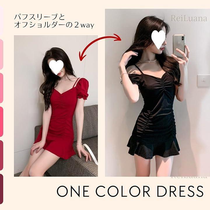 オフショル袖のワンカラードレス