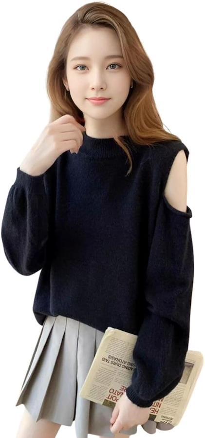「シンプルコーデにこなれ感をプラスして」 肩からのぞく程よい肌見せがヘルシーで大人っぽいニットプルオーバー。