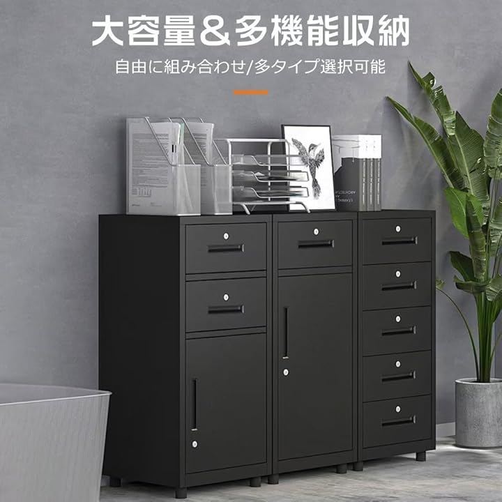 「豊かな収納スペース」上の広々とした台面は印刷機や、本立て、ファイルなど置くことができます;滑らかなスライドレール付きの引き出しには、文具、事務用品など大量入っても崩れません;扉中の仕切り板高さ調整可能で、スペースを活かせて、フォルダーを区分けて収納可能です。