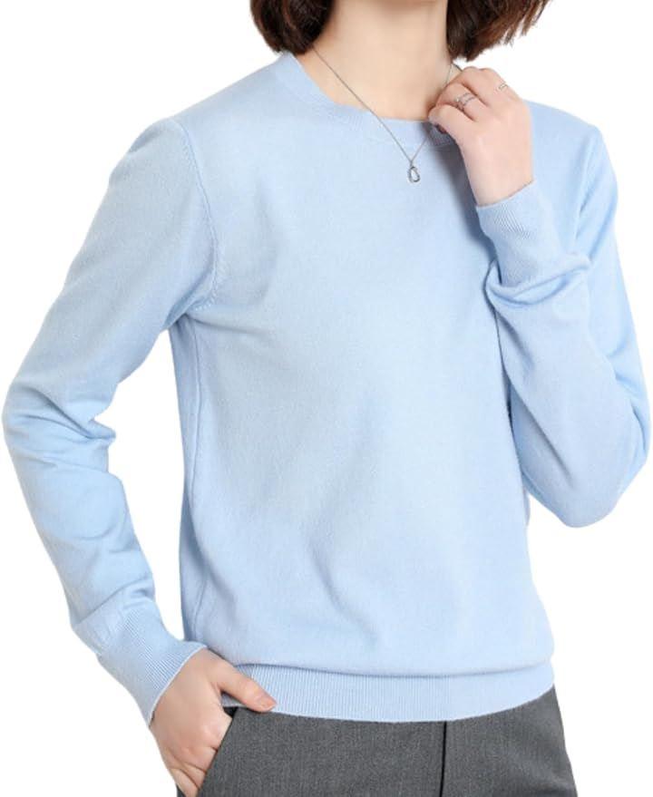 「なめらかな肌触り」◉肌寒い春や秋冬に欠かせないレディースの長袖 丸首のニットセーターです。