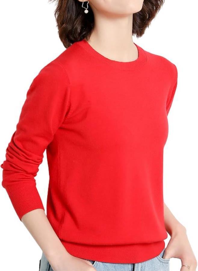 「なめらかな肌触り」◉肌寒い春や秋冬に欠かせないレディースの長袖 丸首のニットセーターです。