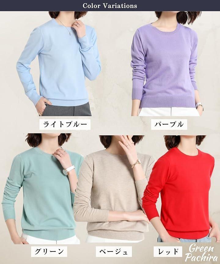 「なめらかな肌触り」肌寒い春や秋冬に欠かせないレディースの長袖 丸首のニットセーターです。