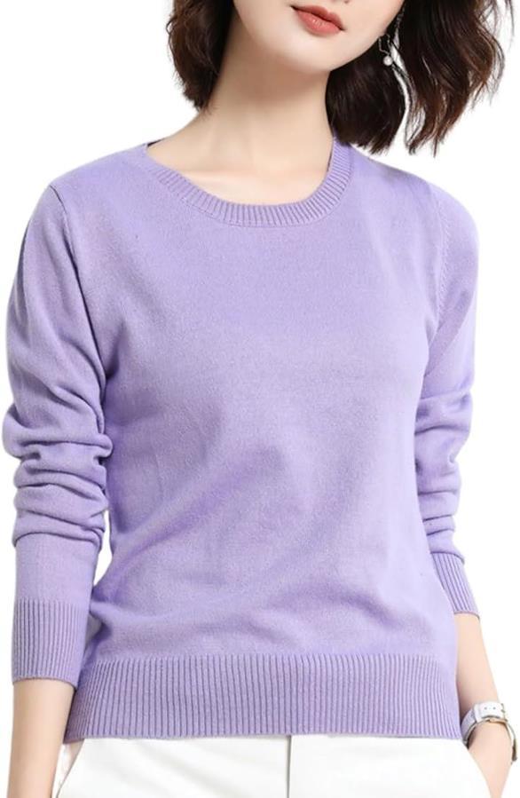 「なめらかな肌触り」肌寒い春や秋冬に欠かせないレディースの長袖 丸首のニットセーターです。