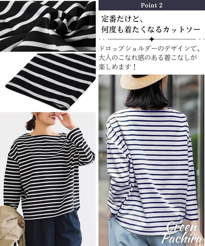 Office casual, women's tops, cut and sewn, striped, long sleeve, women's tops, striped t-shirts, pullovers, boat neck, women's fashion, clothes, drop shoulders, commuting, everyday wear, layering, versatile, simple