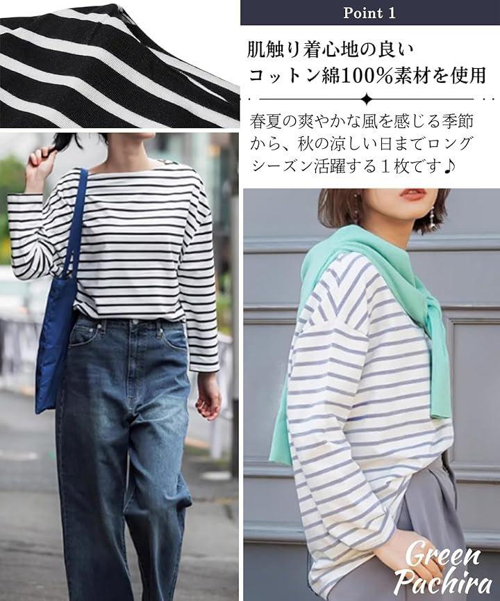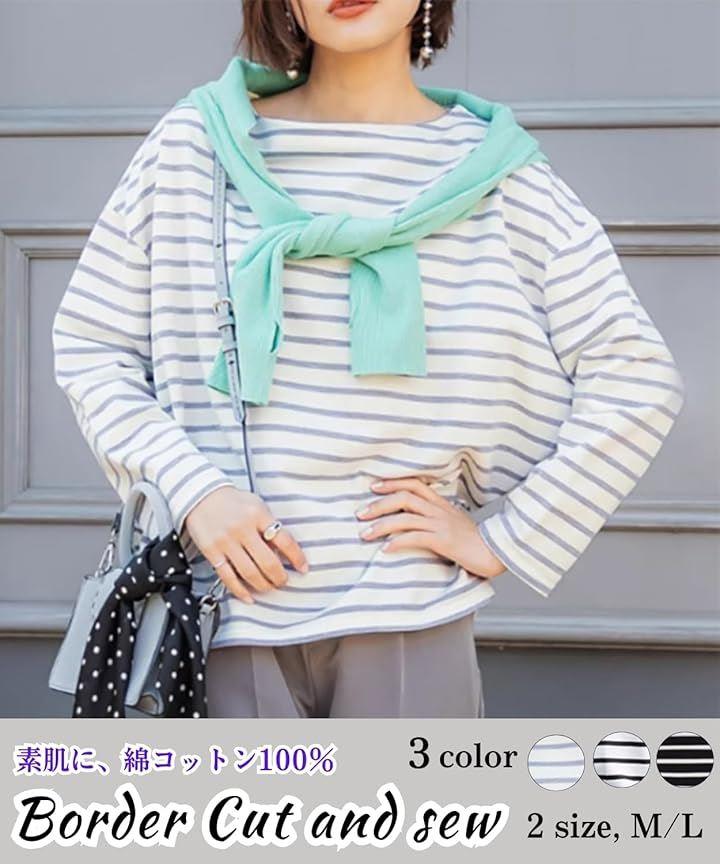 「素肌に、綿コットン100%」肌触りの良いコットン綿100%素材を使用し、快適な着心地を実現したレディース ボーダーTシャツです 。