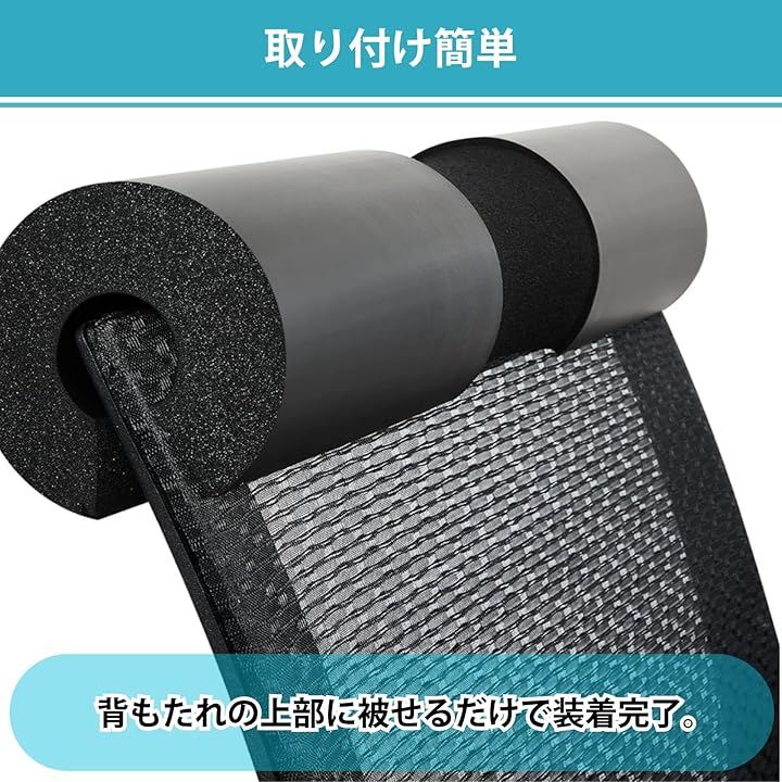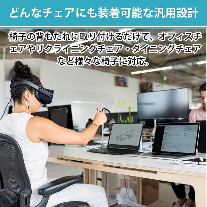 背もたれの上部に装着するだけで、オフィスチェア、リクライニングチェア、家庭用チェアなど幅広く対応。