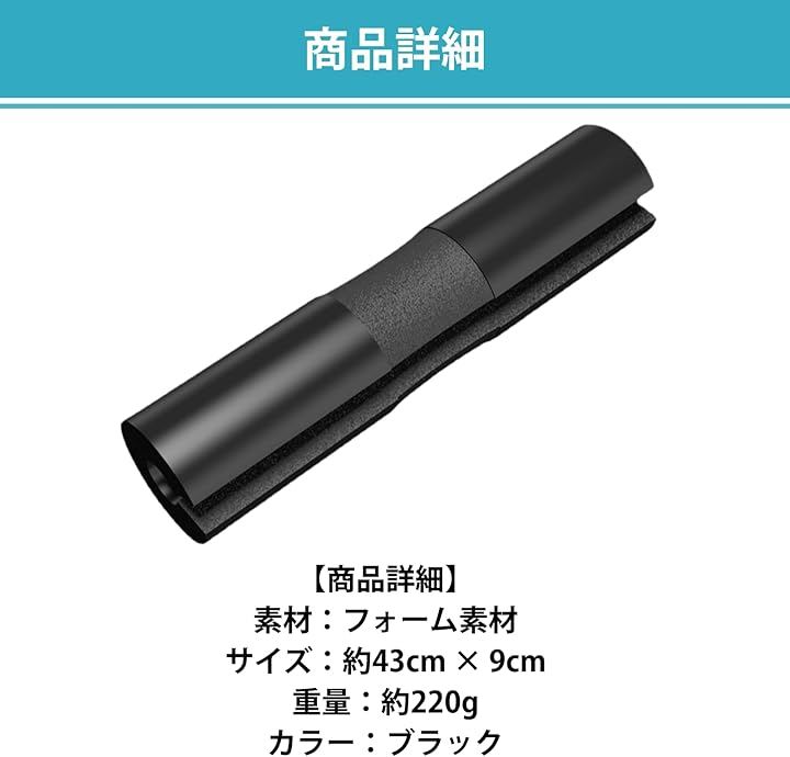 「商品詳細」素材:フォーム素材 サイズ:約43cm x 9cm 重量:約220g カラー:ブラック