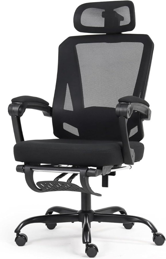 引き出し式フットレスト付きで、休憩時もゆったり使用可能。